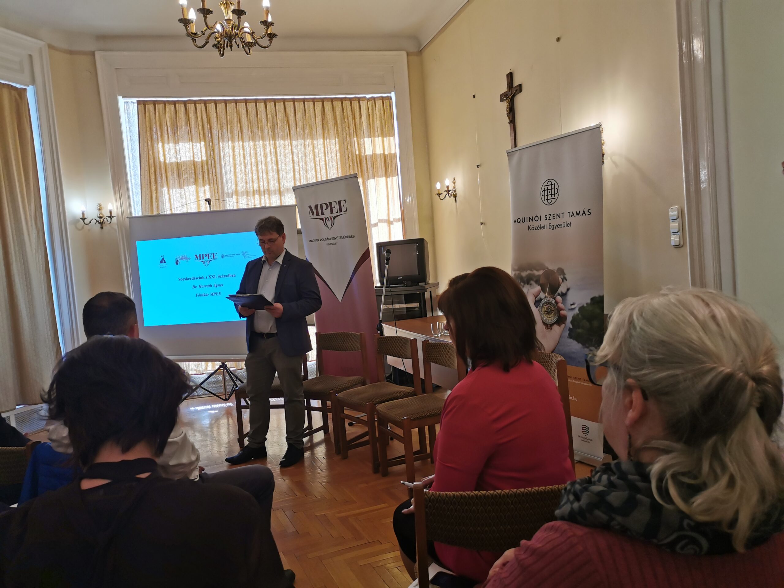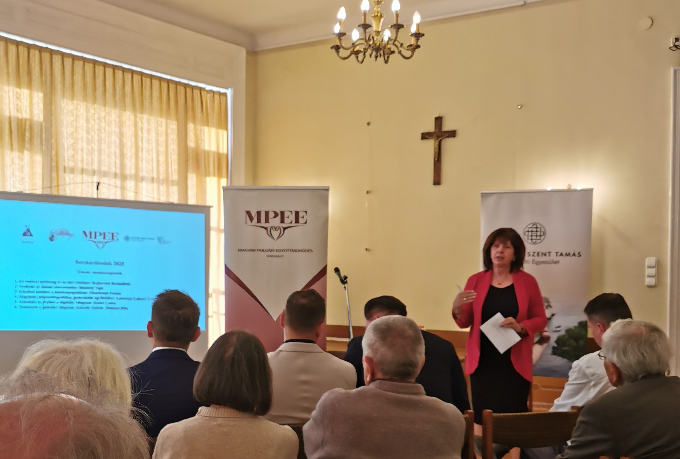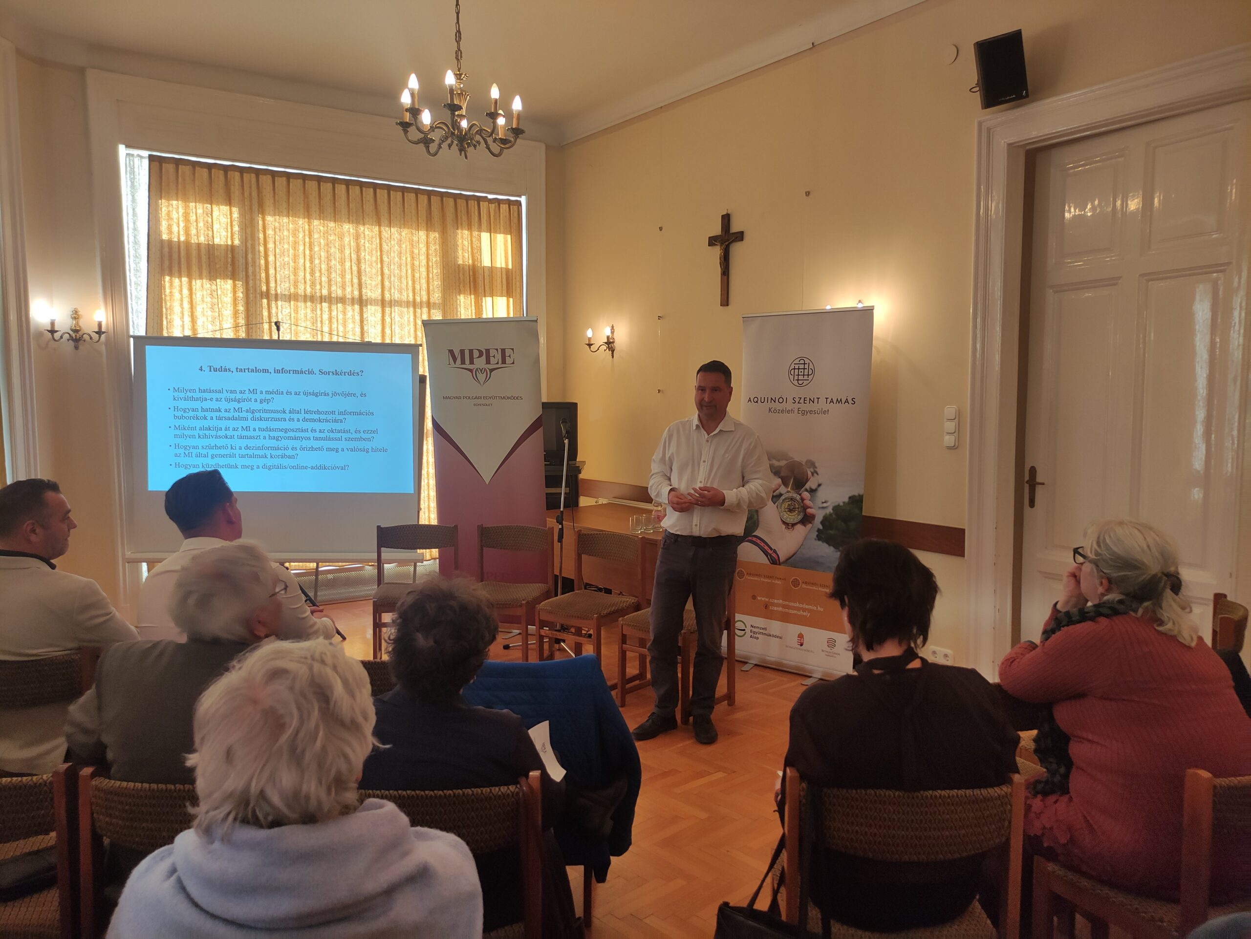 A rendezvényt Kazatsay Ádám, az Aquinói Szent Tamás Egyesület igazgatója nyitotta meg, aki köszöntőjében a szakmai párbeszéd jelentőségét hangsúlyozta. Ezt követően Horváth Ágnes, az MPEE főtitkára ismertette a Sorskérdéseink 2025 program főbb célkitűzéseit és eddigi eredményeit. A szakmai program hat munkacsoportban zajlik, ezek közül az egyik a digitális átalakulás kérdéseivel foglalkozik, a keddi esemény erre a területre koncentrált.